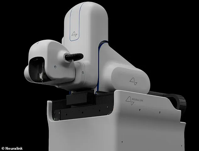 Neuralink says: ‘Our surgical robot [pictured] has been designed to reliably and efficiently insert these threads exactly where they need to be’