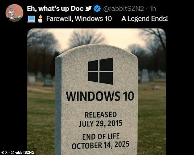 Thanks for all the memories.’ Others shared AI-generated images of tombstones etched with the Windows logo, turning the end of support into a darkly humorous yet poignant farewell.