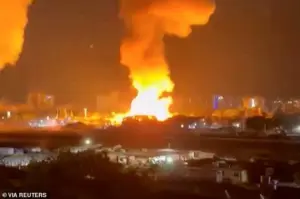 Explosions lit up the capital, with plumes of smoke rising from the targeted area as chaos erupted.