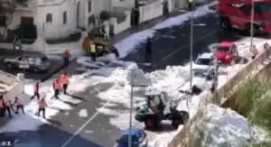 Local authorities scrambled to contain the chaos, deploying diggers to shovel heaps of ice from roads, while emergency teams worked around the clock to clear pathways and restore some semblance of normalcy.