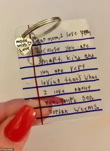 A poignant detail from the fundraiser included a photograph of a key ring with a handwritten note from Jordan, dated May 2021, when he would have been 11 years old.