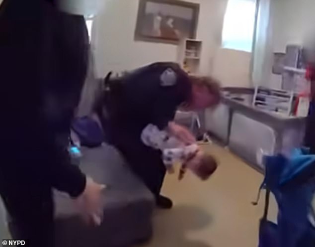 One of the officers, from the city's 115th precinct, swiftly laid Makai over his knee and delivered forceful back blows, a technique recommended by medical professionals for infants choking on vomit. 'He's good, he's good,' the officer said, his voice steady, as the blockage was finally dislodged.