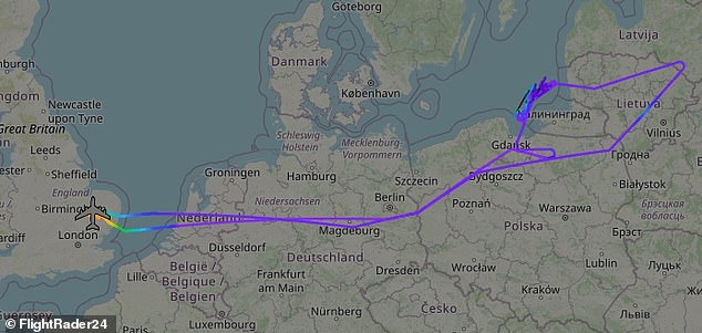 The jet flew over the Baltic states, circled Kaliningrad—the Russian exclave sandwiched between Poland and Lithuania—and returned to the UK by 9:36am.