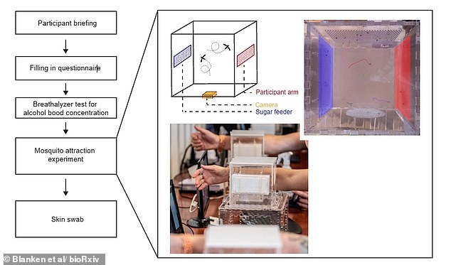 A camera recorded the number of mosquitoes that attempted to bite them, while tiny holes in the cage allowed the insects to detect scents without making contact.